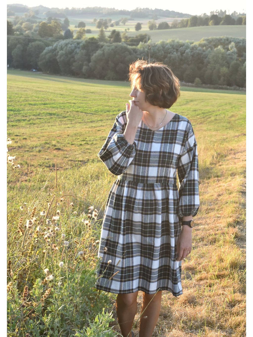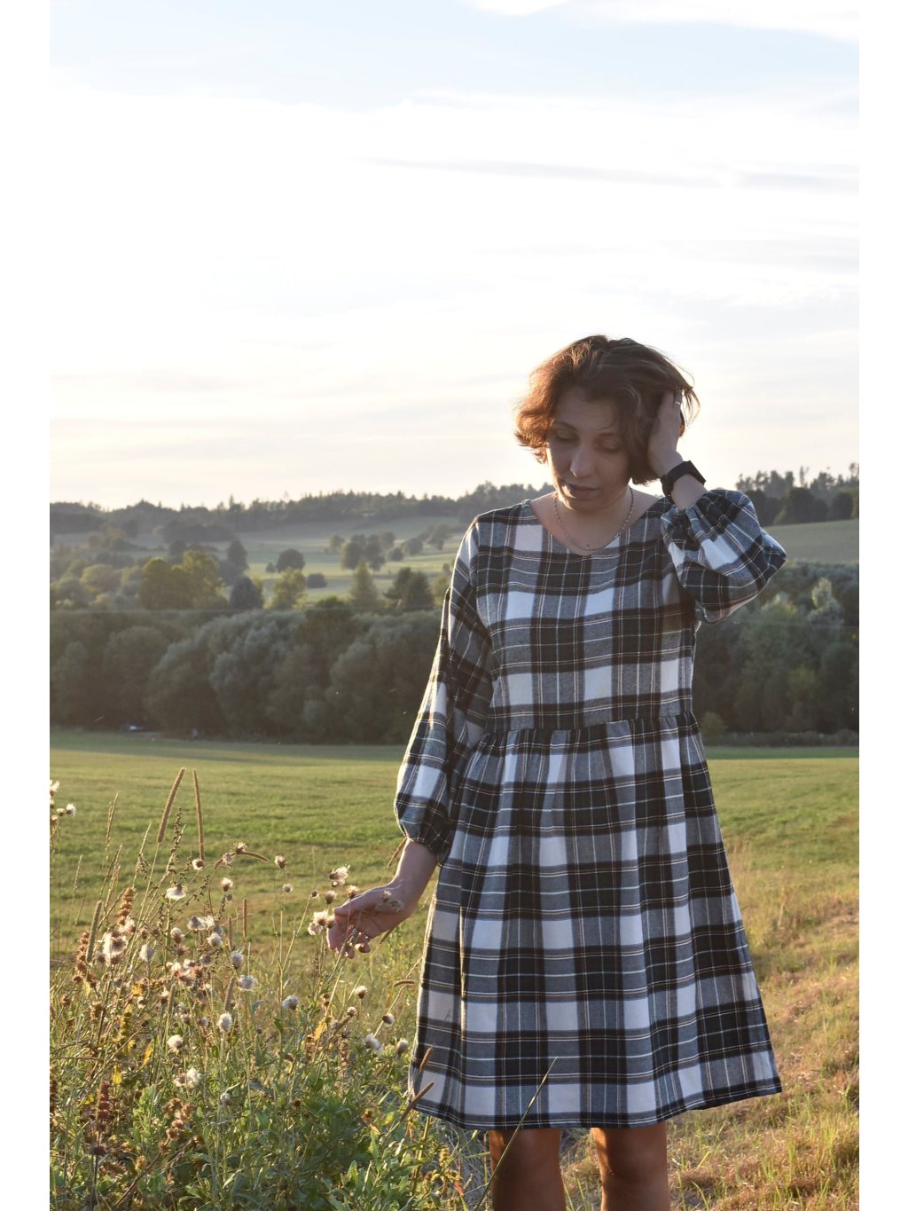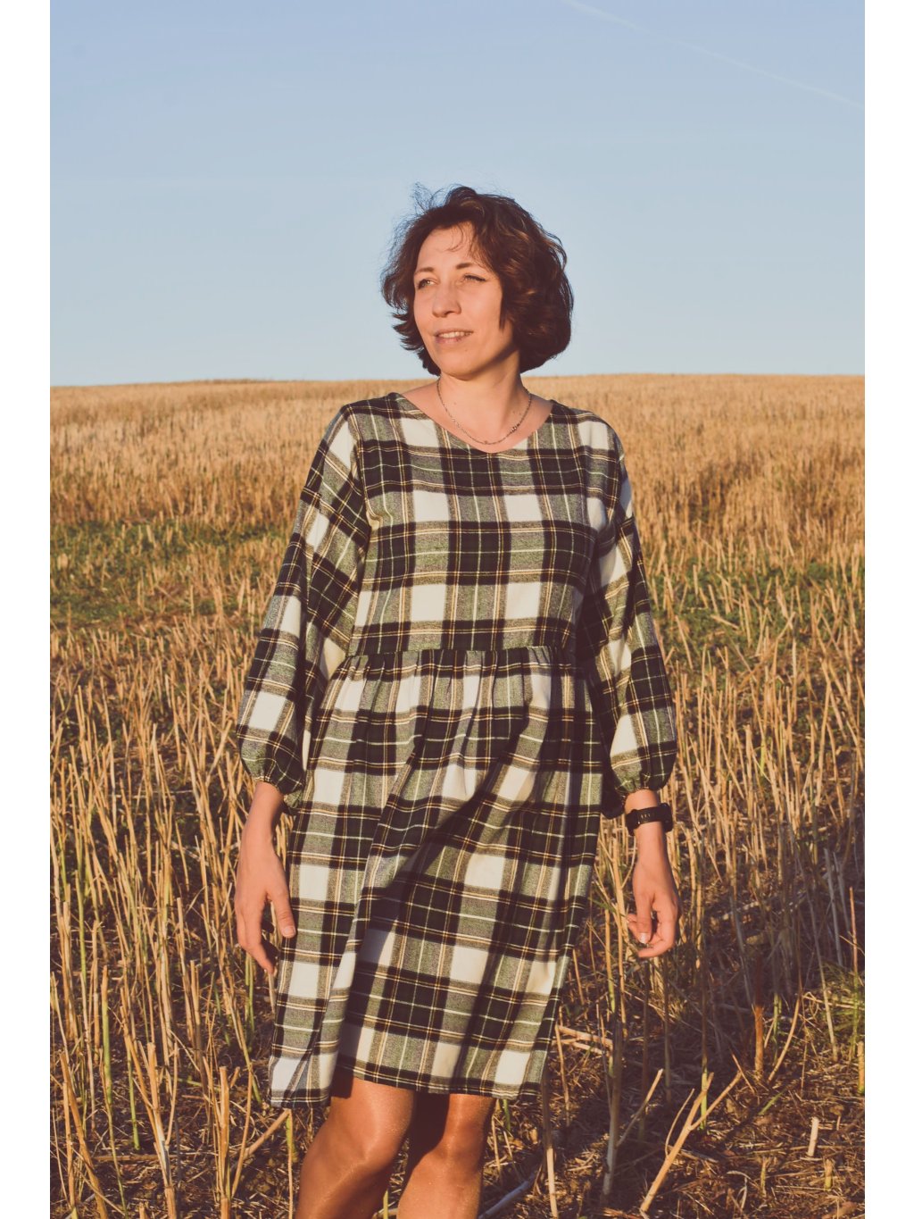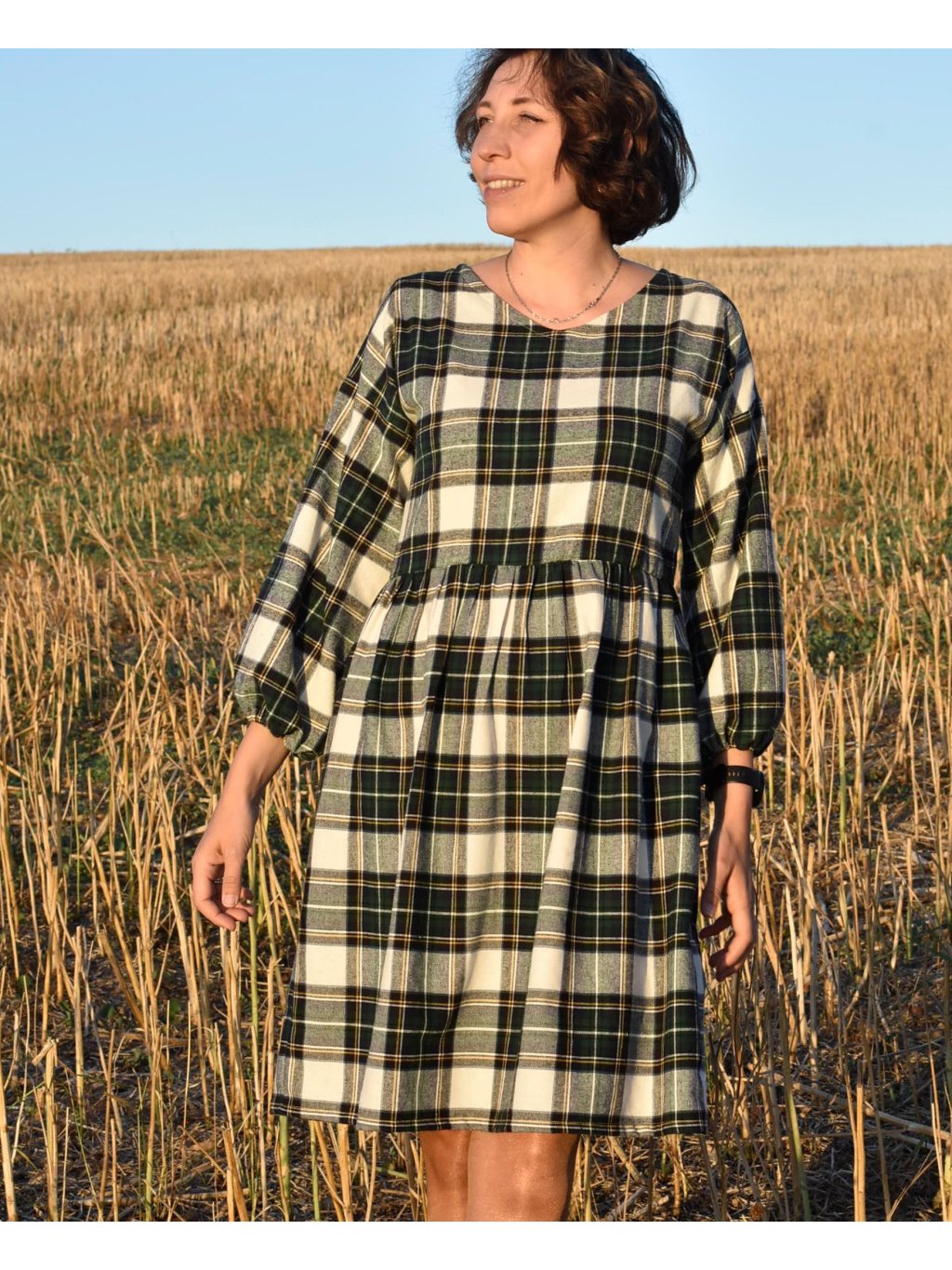 jemné flanelové šaty s balónovými rukávy jsou ideální na podzimní/jarní období