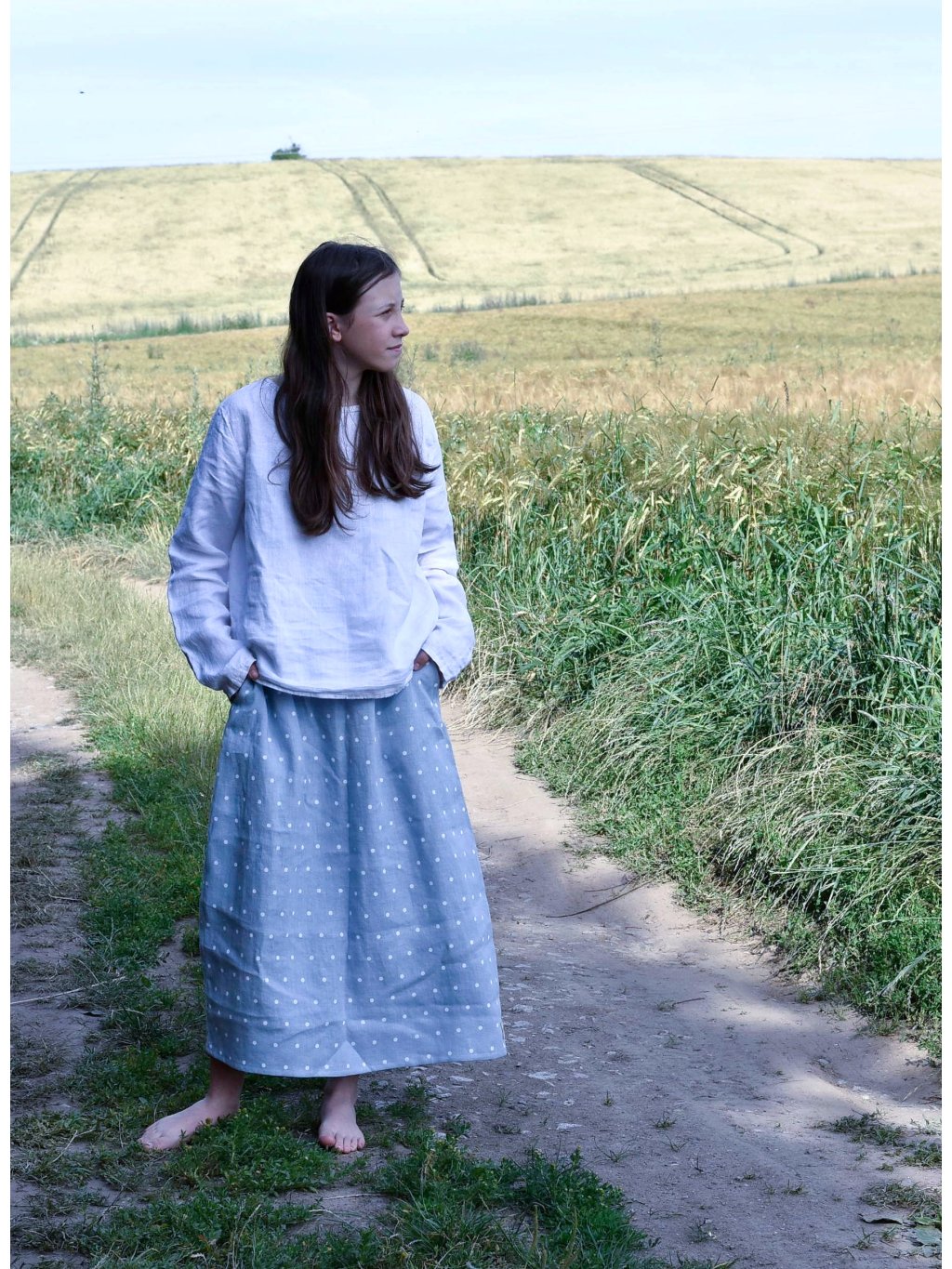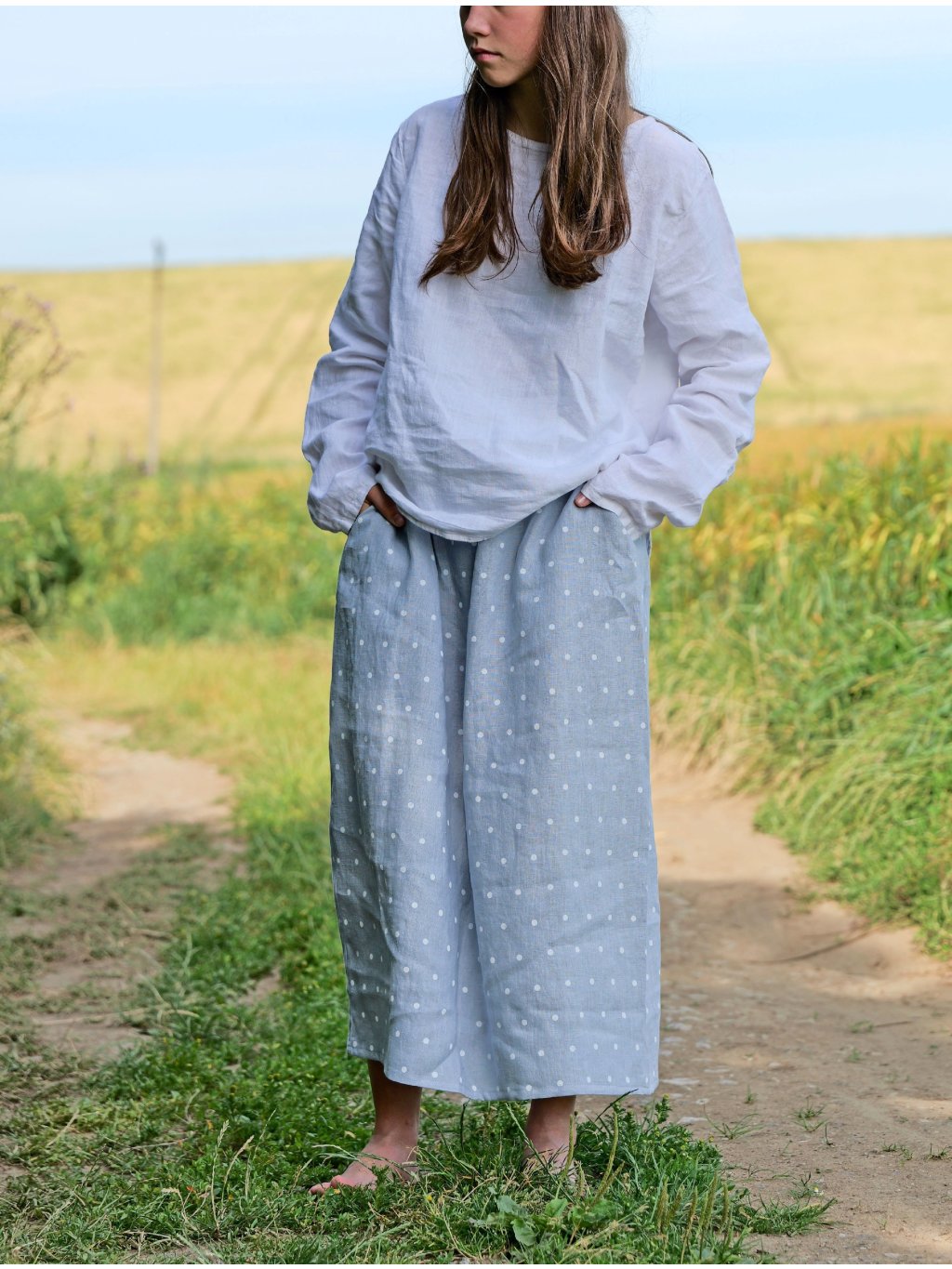 Lněná sukně puntík S/M