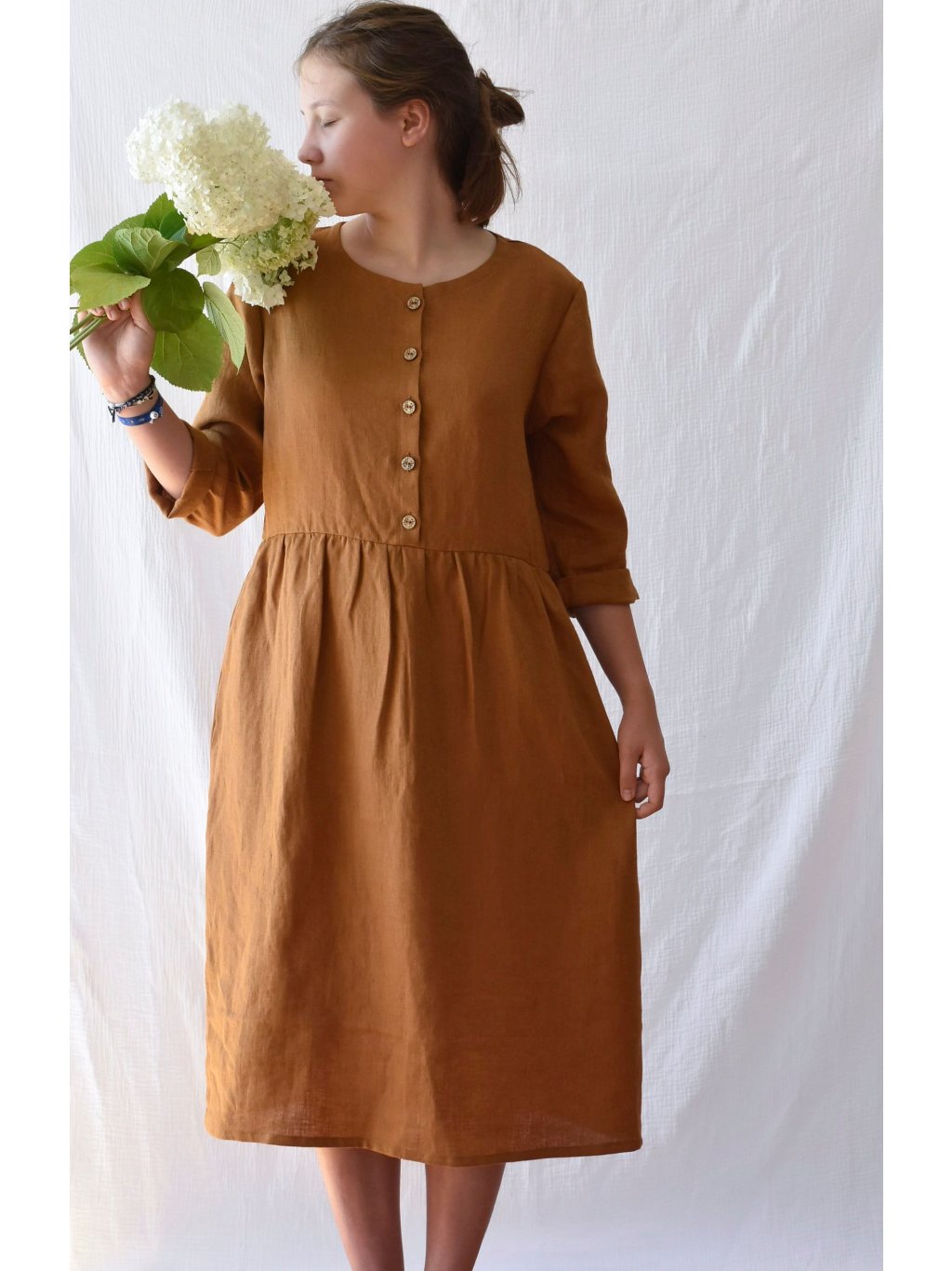 Lněné šaty na zapínání