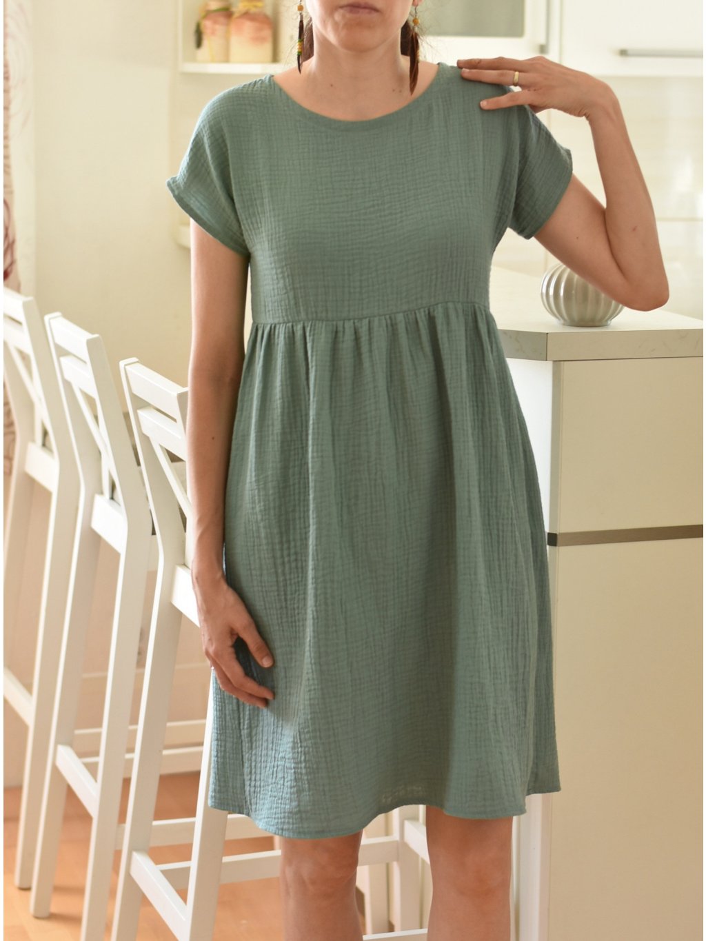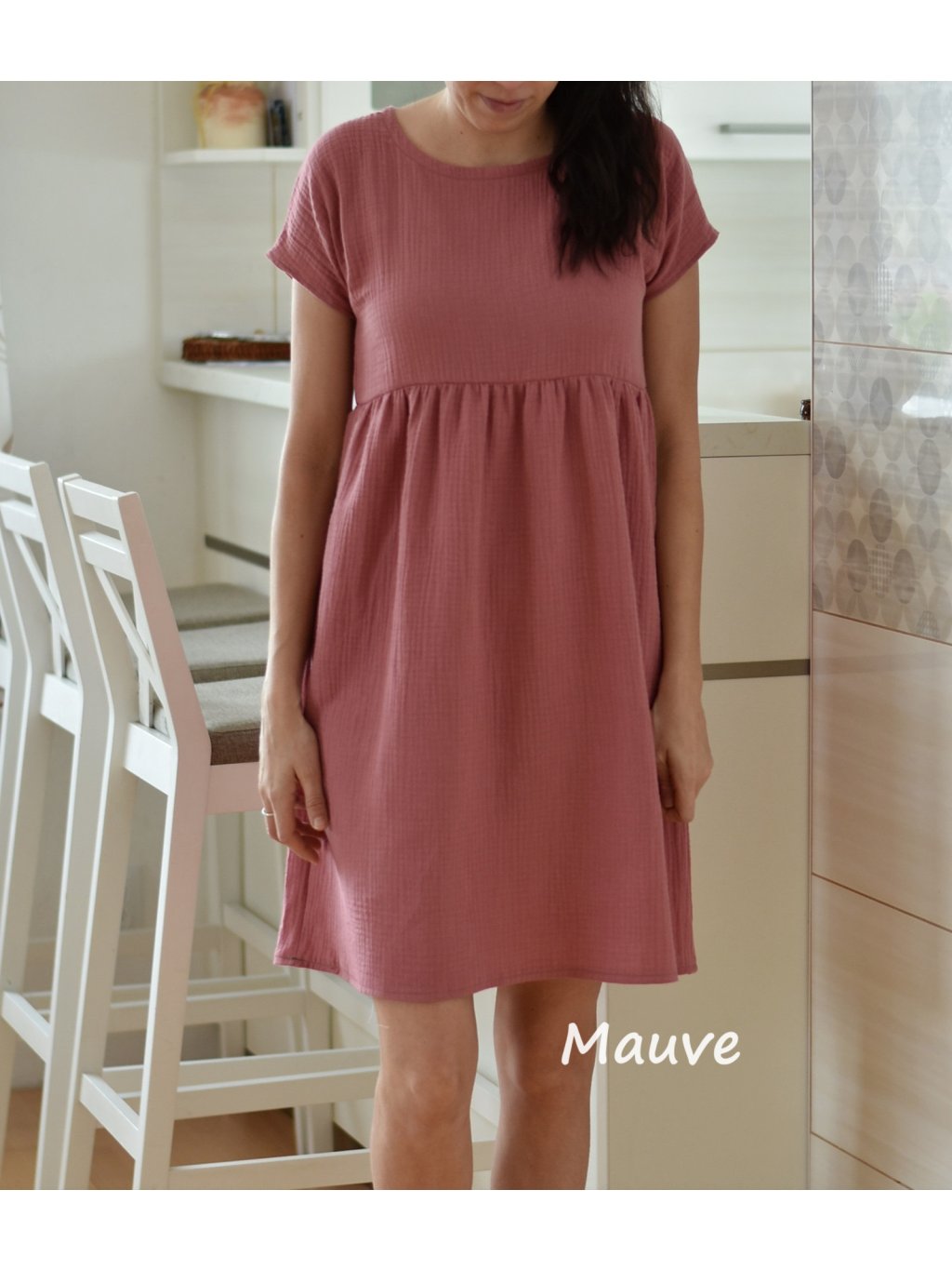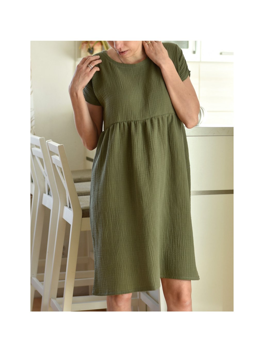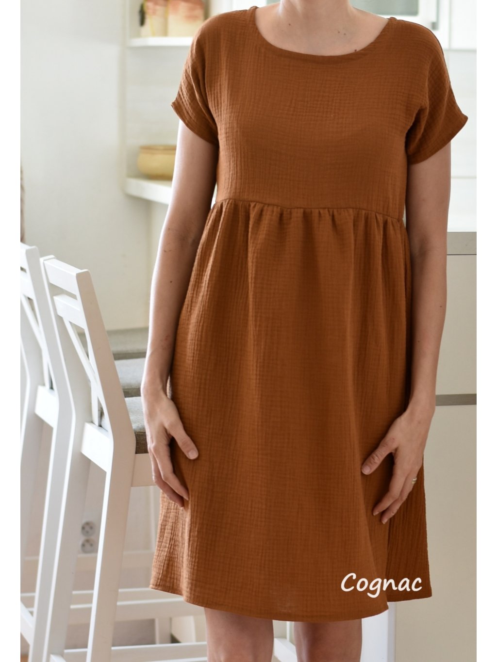 šaty z dvojité gázoviny/mušelínu ze 100% bavlny v barvě karamel
