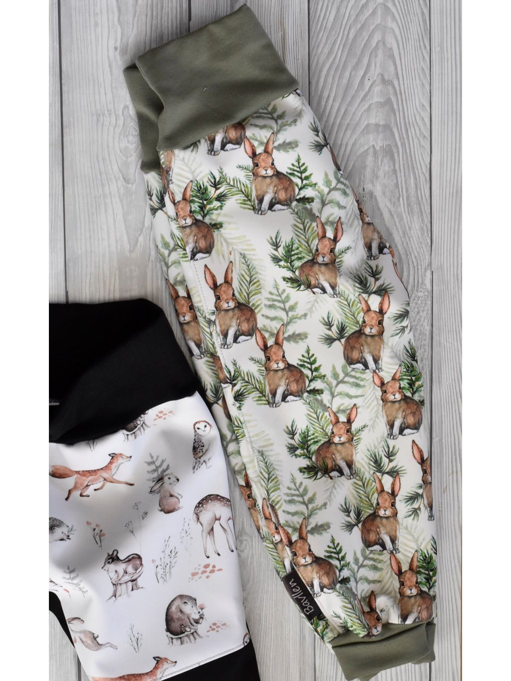 softshell kalhoty s tiskem zajíčků, SKLADEM vel. 86